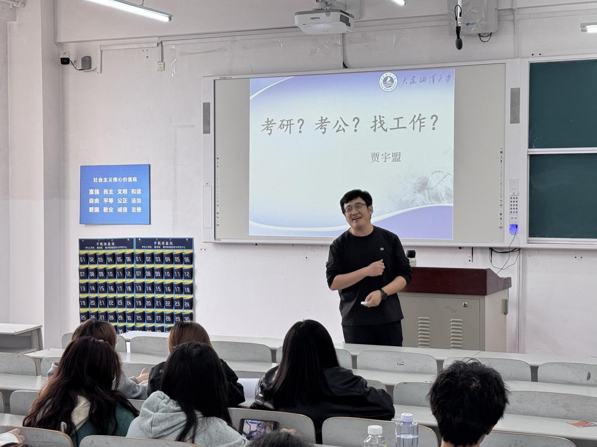 针对同学们较为关注的考研和考公方向,贾老师通过翔实的数据分析了近年考研考公的报名与录取形势,并讲解了备考策略。他强调“正确的院校选择比分数更重要”,提醒同学们要关注报录比,合理定位目标。此外,他还介绍了跨专业考研的可行方向,并通过趣味逻辑题启发现场同学锻炼思维。